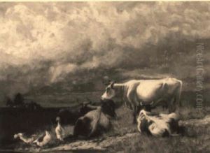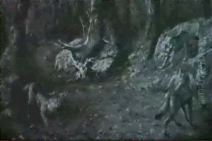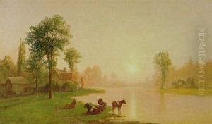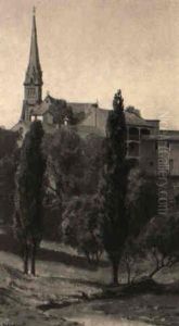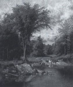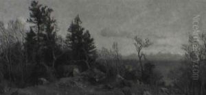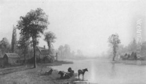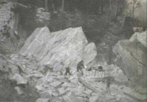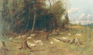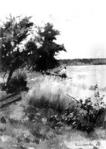 Birches By A River Shore &d: On Panel] & Wild Flowers Amidst Tree Stumps