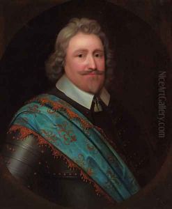 Portrait Of A Military Commander Holding A Baton, In Armor Oil Painting by Thomas Murray