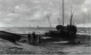 Figures Gathering Seaweed In A Stormy Costal Landscape