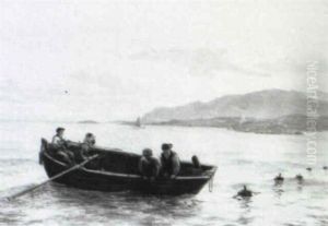 Seascape With Fishermen Rowing Out To Their Boats
