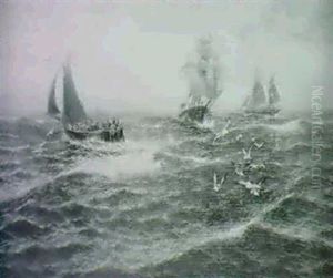 A Schooner On The Scroby Sands - The Lifeboat Turning Right To Windward