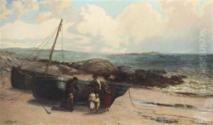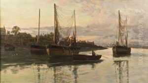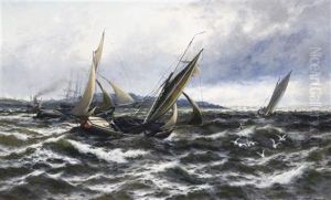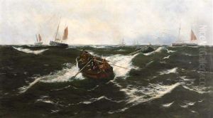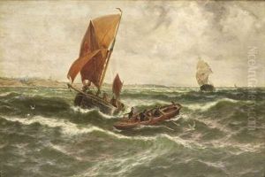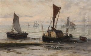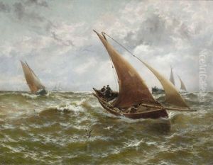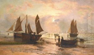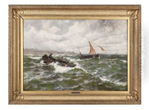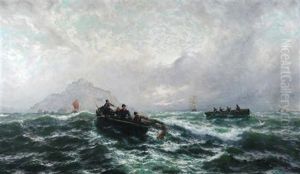 Fishermen Trawling Nets Off Mont St. Michel, With Clippers Beyond