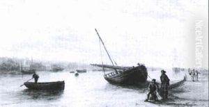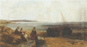 Figures Gathering Seaweed In A Stormy Costal Landscape