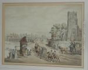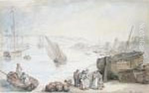 A View On The Thames With Numerous Ships And Figures On The Wharf