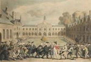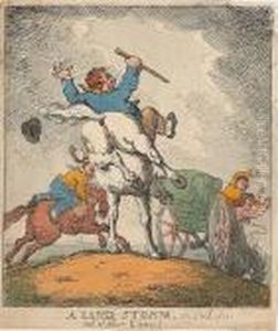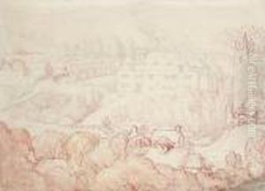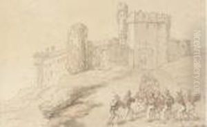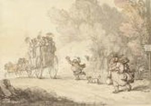 A Figure Watering His Cart Horses In A Stream