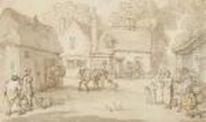 A Street Scene With Figures And Horses