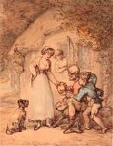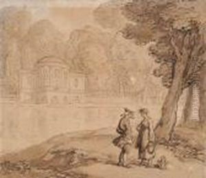 A Gentleman On Horseback Conversing With A Young Girl Tending Cattle