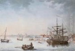 The Thames At Deptford, London, With Figures In Theforeground