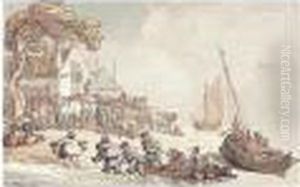 Figures Unloading Fishing Boats On The Shore