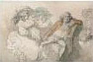 Nymphs Bathing, Pen And Ink And Watercolour, 10.5 X 18 Cm.; 4 X 7 In
