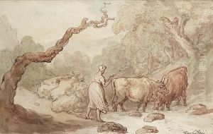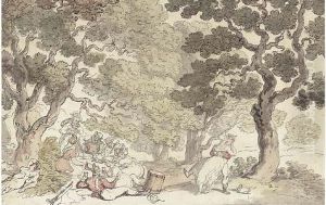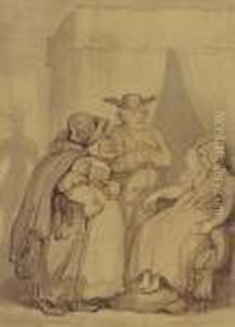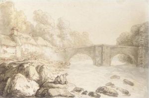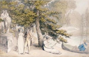A Wooded Landscape With Lovers By A Stream, A Couple Fishing