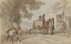 Villagers Merrymaking By A Tavern With Moored Shipping In A Harbour