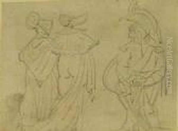 A Military Gentleman Admiring A Pair Ofsemi-clad Young Women