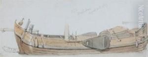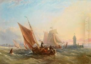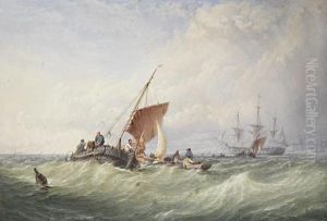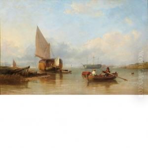 Barges And A Trading Brig At Work In Anestuary, With Fishermen Recovering Their Lobster Pots In Theforeground