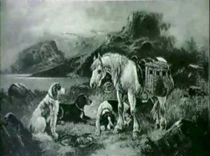 Cattle in a Highland landscape; and Cattle watering