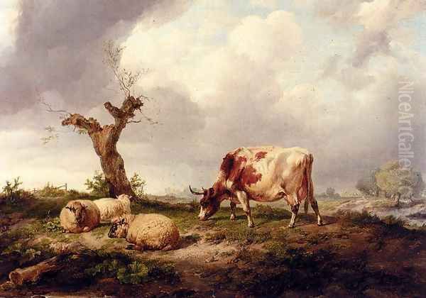 A Cow With Sheep In A Landscape