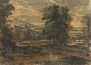 Landscape with Mountains, Lake Castle, Seated Figure in Foreground