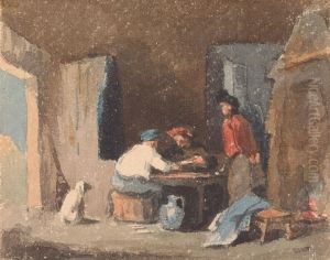 Figures at a Table Inside a Cottage
