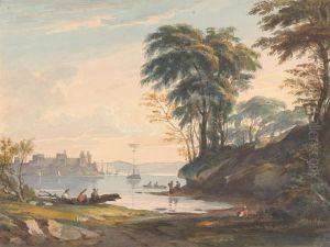 Landscape with Trees and Lake With Figures and Boat