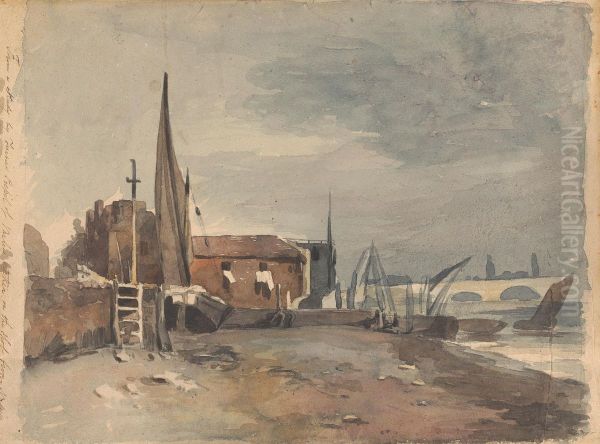 Shore Scene with Buildings and Boats