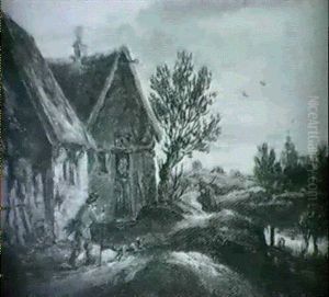 Paysans Conversant A L'entree D'un Village