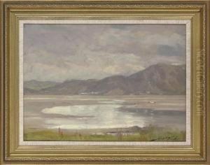 Shipping Off An Estuary; Herdsmen And Cattle On The Bank Of An Estuary