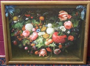 Still Life Study Of A Swag Of Flowers And Fruit