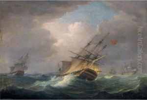 A Naval Squadron In A Swell, With A Frigate, H.m.s. Minerva, In Theforeground Bearing Away On A Southerly Course