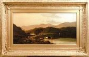 Mountain River Landscape With Figure In A Punt