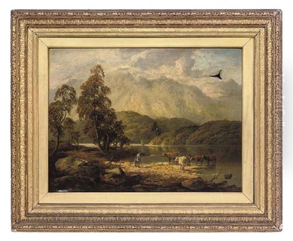 An Extensive River Landscape With Cattle Watering
