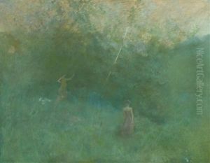 Thomas Wilmer Dewing was an American painter working at the turn of the 20th century. He is best known for his tonalist paintings, a style that emphasizes atmosphere and shadow. Dewing was born in Boston, Massachusetts, in 1851. He began his artistic education at an early age, showing considerable talent which led him to continue his studies in Paris at the Académie Julian under the tutelage of Gustave Boulanger and Jules Lefebvre, two prominent French artists of the time.