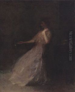Dewing's paintings were well received, and his works are part of major museum collections, including the Metropolitan Museum of Art and the Smithsonian American Art Museum. He remained active in the art world throughout his life, contributing to the development of American art in the late 19th and early 20th centuries. Thomas Wilmer Dewing died in 1938, leaving behind a legacy as a master of tonalist painting and an influential figure in American art.