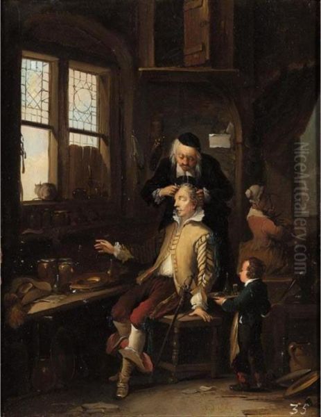 Bring the timeless beauty of Thomas Wyck's The Barber Shop into your home with a handmade oil painting reproduction. Carefully recreated on canvas by skilled artists using traditional techniques, this piece captures the delicate brushwork, subtle light, and vibrant color of the original masterpiece. With museum-level quality and rich texture, it brings elegance and artistic depth to any space. Enjoy free shipping and make this masterpiece a part of your personal collection.
