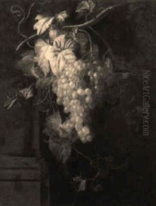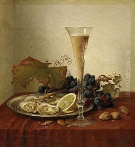 Still Life Of Oysters, Figs, Prawns And Lemons On A Pewter Dish With Grapes, Pipes And A Roemer On A Draped Ledge