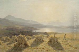 Eine Alte Frau Und Zwei Bauern In Einer Scheune Mit Einem Prachtigen Kuchenstillleben