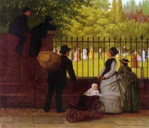 A Lady With A Negro Servant And Two Dogs Near A Classical Fountain