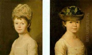 Portrait Of Miss Hippisley In A White Dress And Blue Shawl, Holding A Bunch Of Flowers