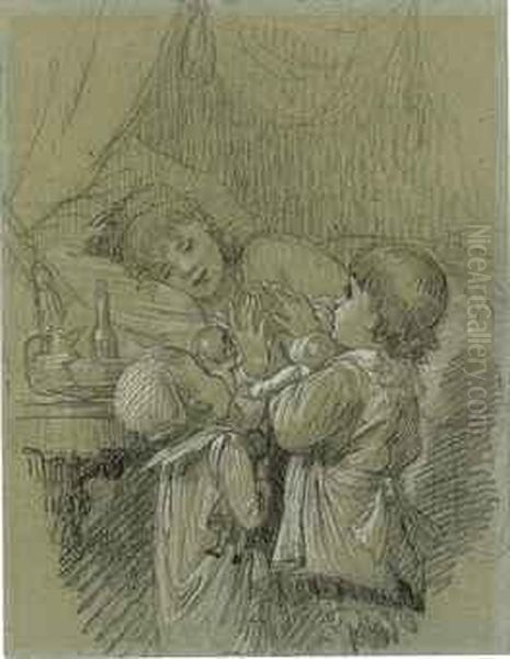 Two Children Waking Their Mother