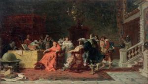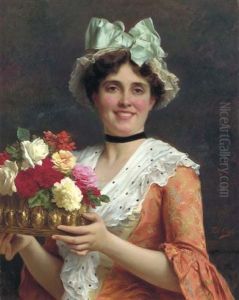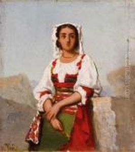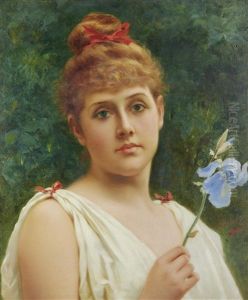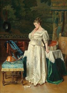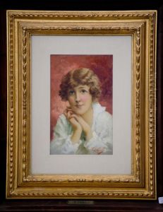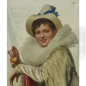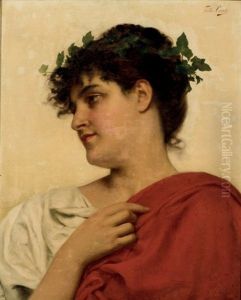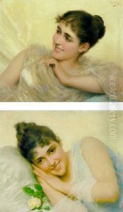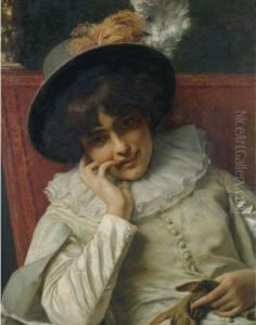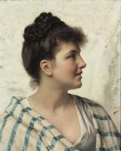 Portrait Of A Young Woman With Long Dark Hair, In Pink And White