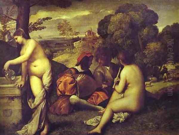 Bring the timeless beauty of Tiziano Vecellio (Titian)'s Concert Champetre into your home with a handmade oil painting reproduction. Carefully recreated on canvas by skilled artists using traditional techniques, this piece captures the delicate brushwork, subtle light, and vibrant color of the original masterpiece. With museum-level quality and rich texture, it brings elegance and artistic depth to any space. Enjoy free shipping and make this masterpiece a part of your personal collection.