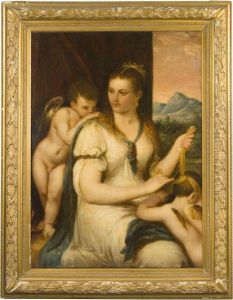 Venus crowned by Cupid, a landscape beyond