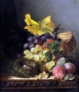 Still Life Of Peaches, Strawberries And Grapesresting On A Ledge