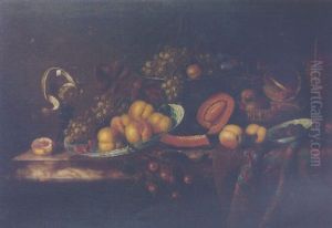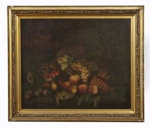 Still Life Of Fruit With A Basket And Bowl And A Parrot And Jay