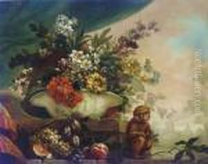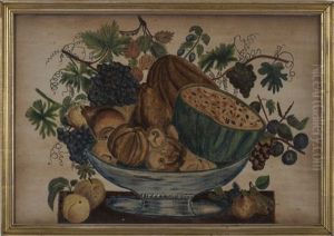 Still Life With Fruit In A Porcelain Bowl Flanked By A Pair Of Glass Vases