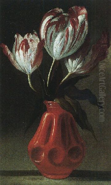 A Still Life Of Tulips In A Portuguese Terracotta Pot