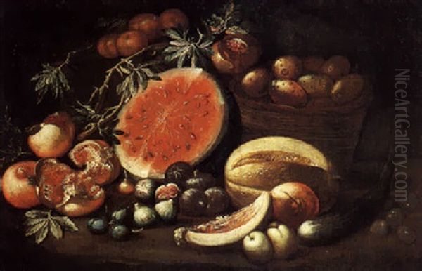 Natura Morta Di Frutta E Verdura Con Cocomero Al Centro