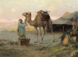 Beduinenlager In Einer Oase Bei Abendstimmung