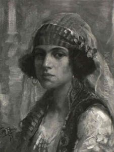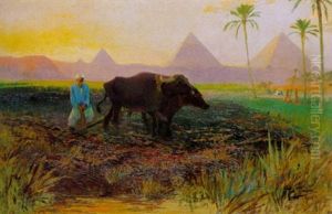 Beduiner I Orkenen, I Baggrunden Pyramider