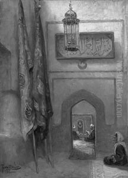 "vorhalle Der Moschee In Luxor". Sign. Und Bez. Luxor, Rucks. Betitelt. Ol Auf Lwd. 60,5 X 45 Cm. Rahmen
