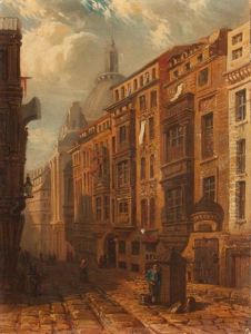 Town Scene With Cobblestone Road